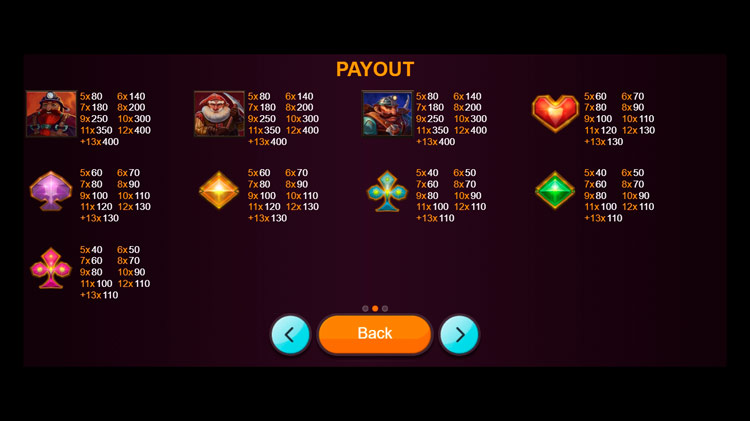 Таблица выплат Mines Of Glory