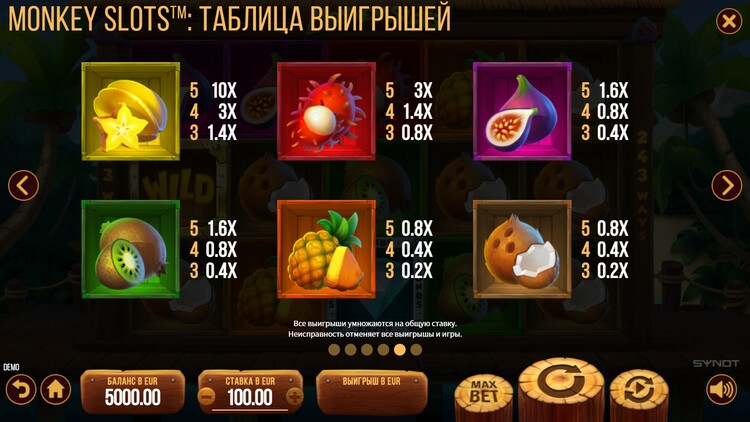 | Кокос, Ананас | 0,2 | 0,4 | 0,8 |