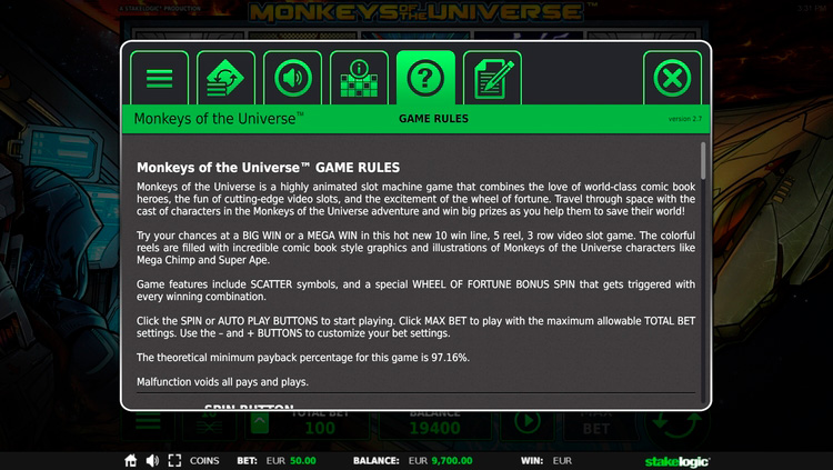 Таблица выплат Monkeys of the Universe