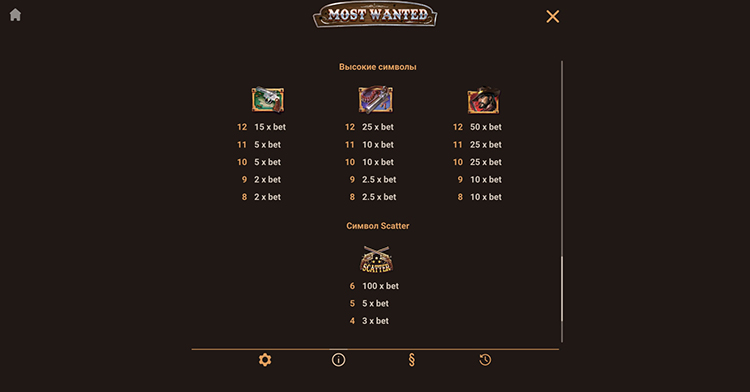 Таблица выплат Most Wanted