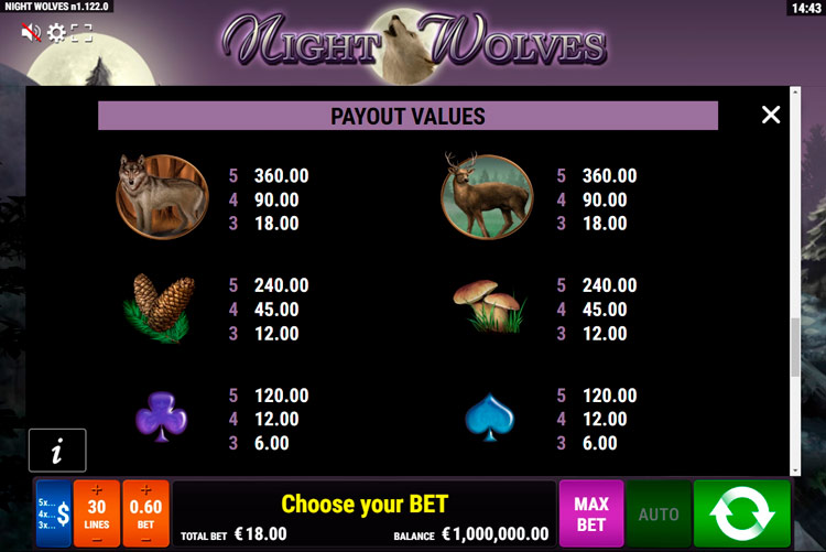Таблица выплат Night Wolves