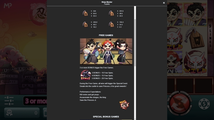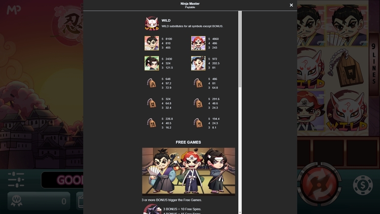 Таблица выплат Ninja Master