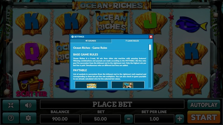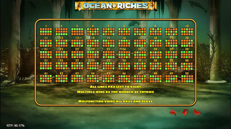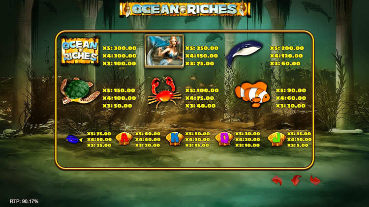 Таблица выплат Ocean Riches