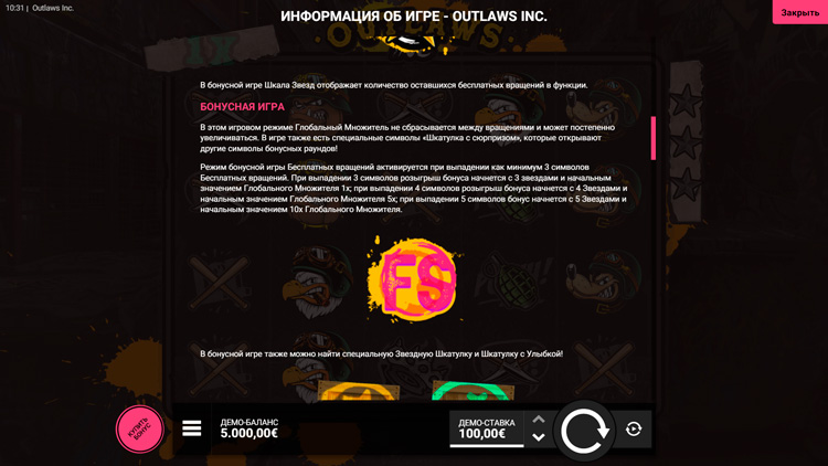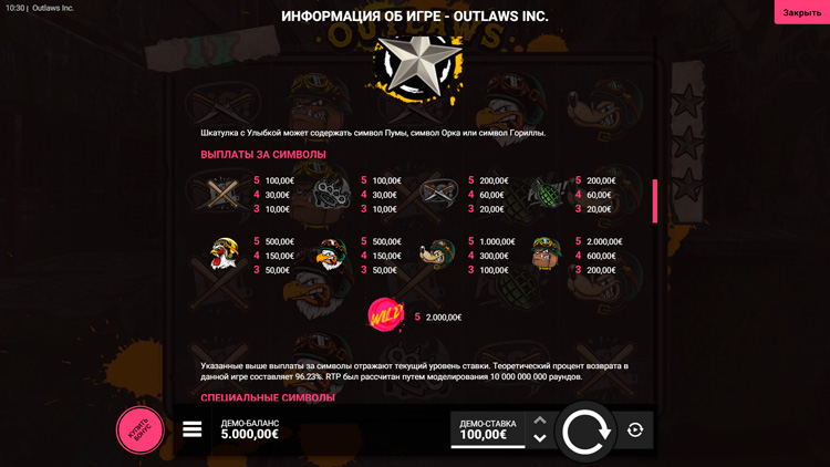 Таблица выплат Outlaws Inc
