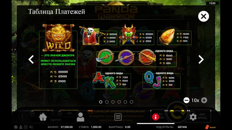 Таблица выплат Panda Warrior
