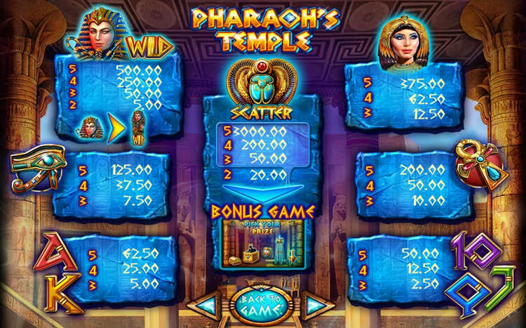 Таблица выплат Pharaoh’s Temple
