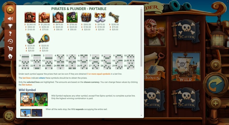 Таблица выплат Pirates and Plunder