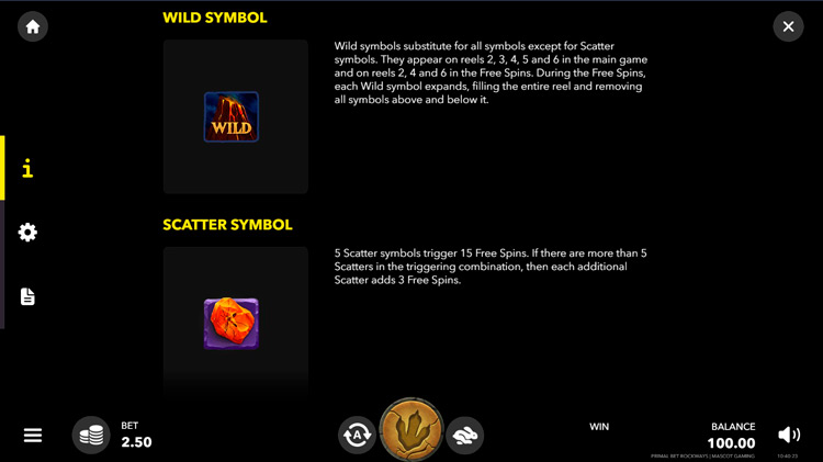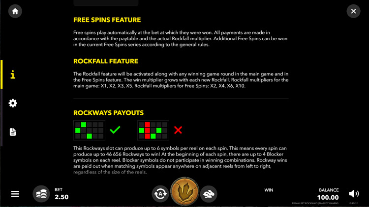 Таблица выплат Primal Bet Rockways