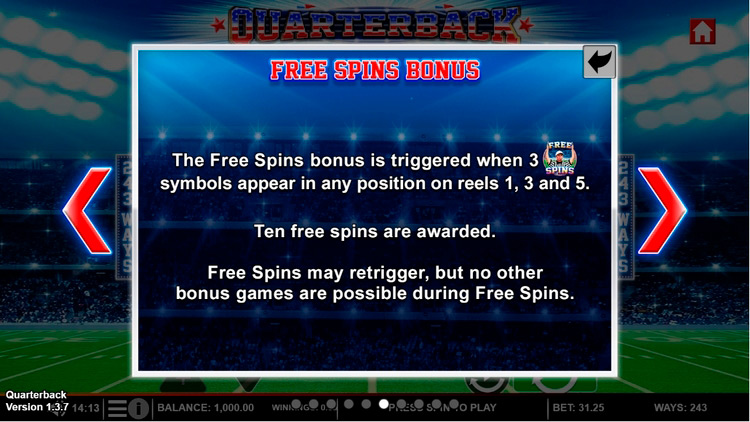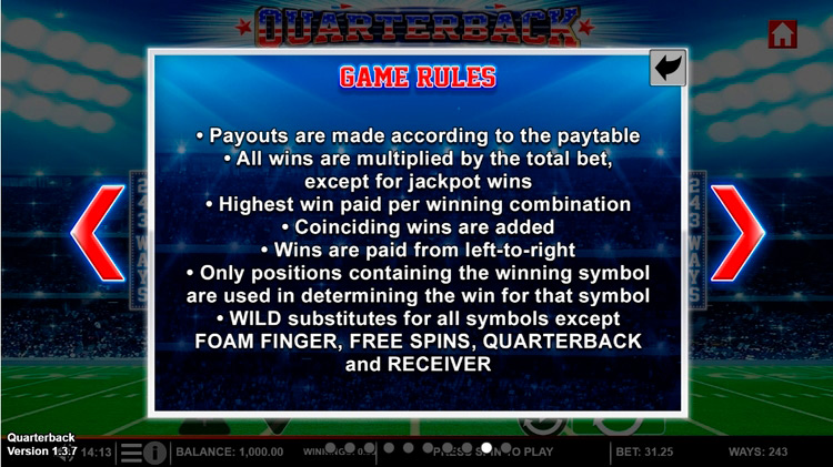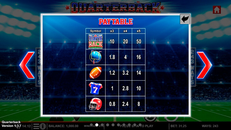 Таблица выплат Quarterback
