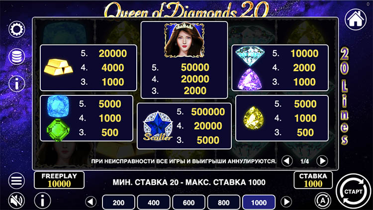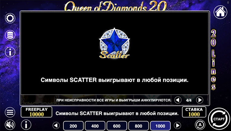 | Звезда (Scatter) | 5000 | 20 000 | 500 000 |