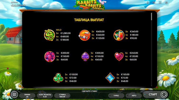 Таблица выплат Rabbits Rabbits Rabbits
