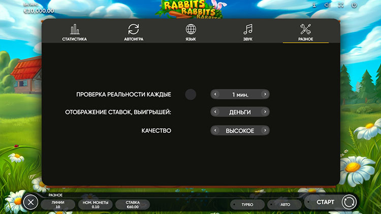 Настройки игрового автомата