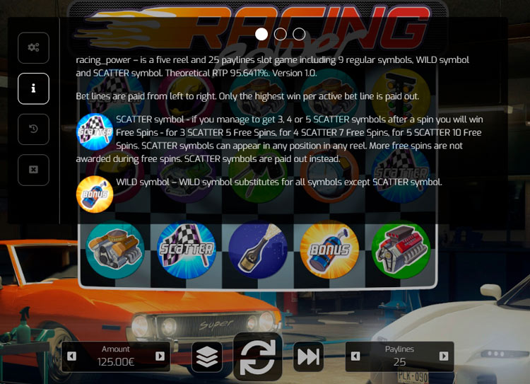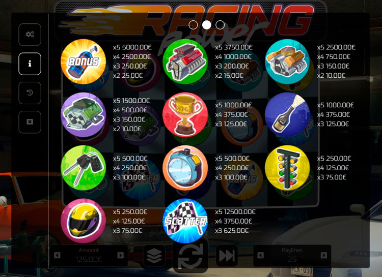 Таблица выплат Racing Power