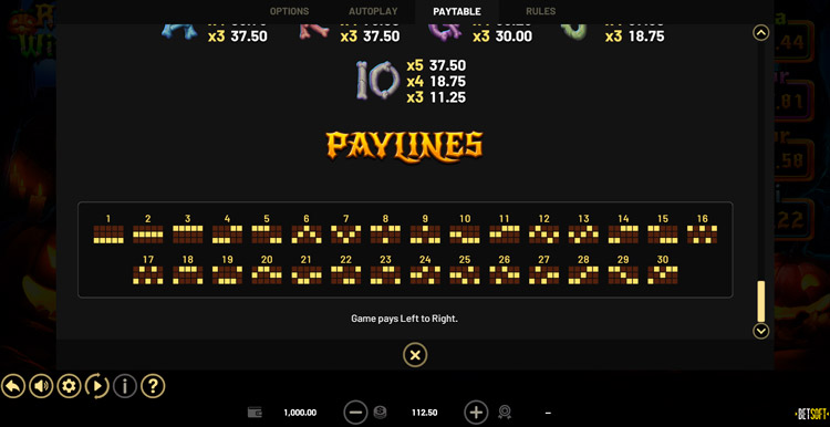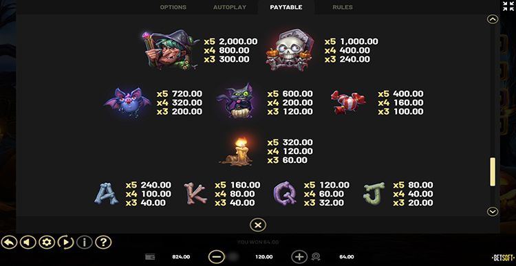 Таблица выплат Rags to Witches