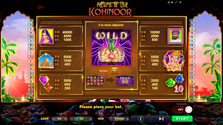 | Ганеша, Тадж-Махал | 400 | 1 000 | 5 000 |