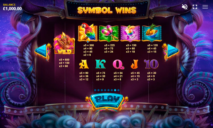 Таблица выплат Rio Stars