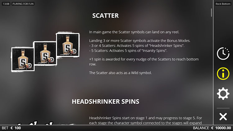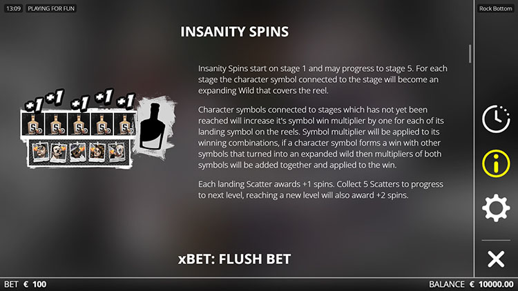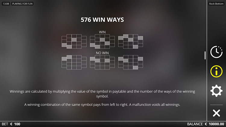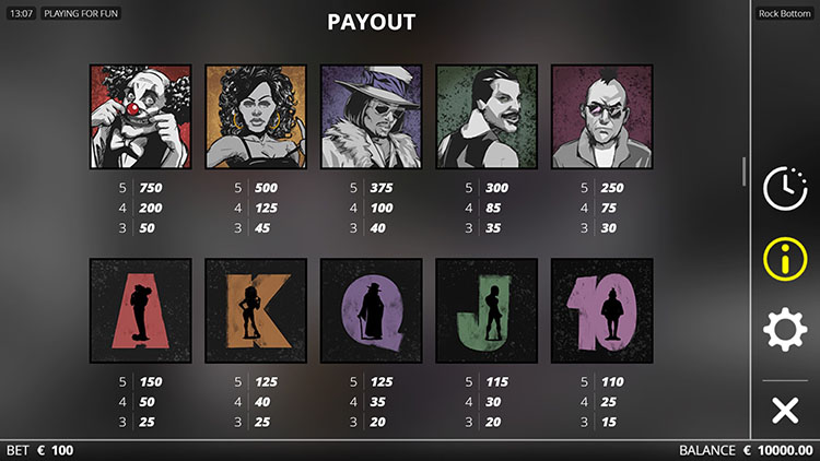 Таблица выплат Rock Bottom