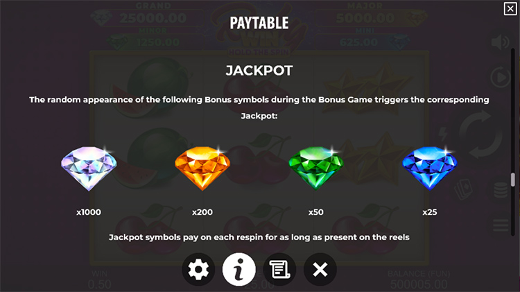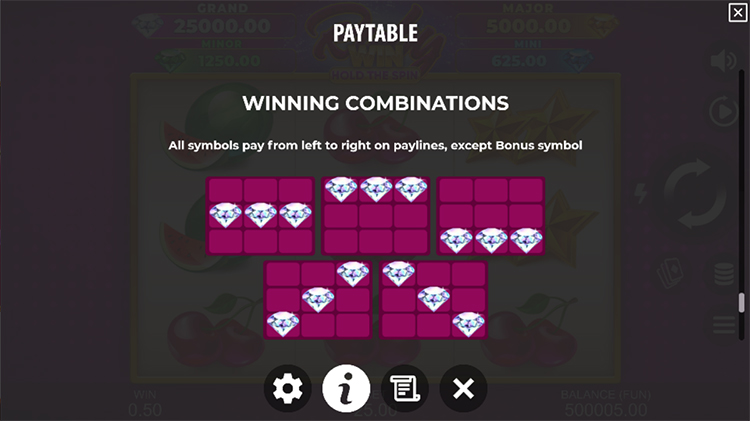Таблица выплат Ruby Win: Hold The Spin