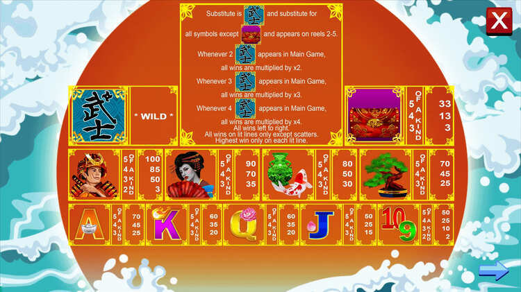 Таблица выплат Samurai Warrior