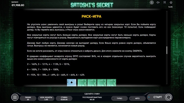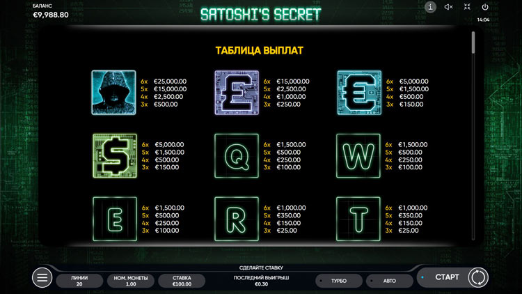 Таблица выплат Satoshi’s Secret