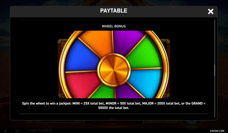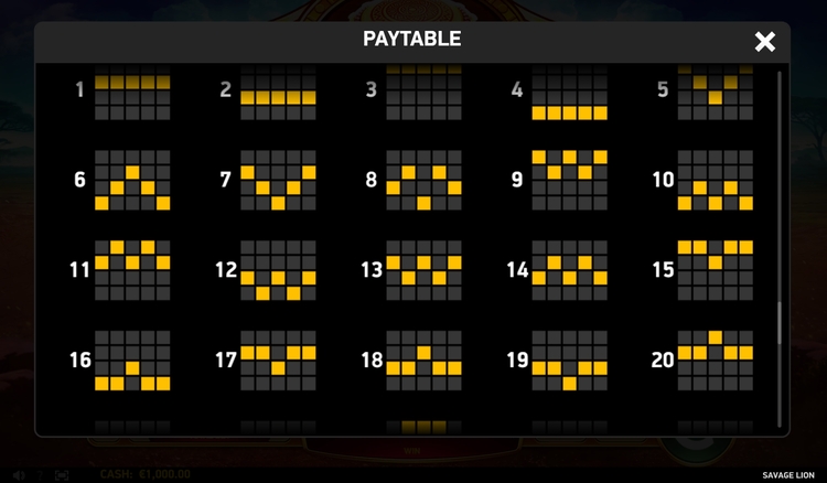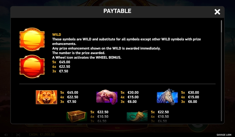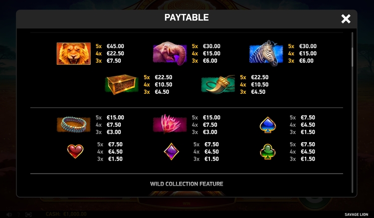 Таблица выплат Savage Lion