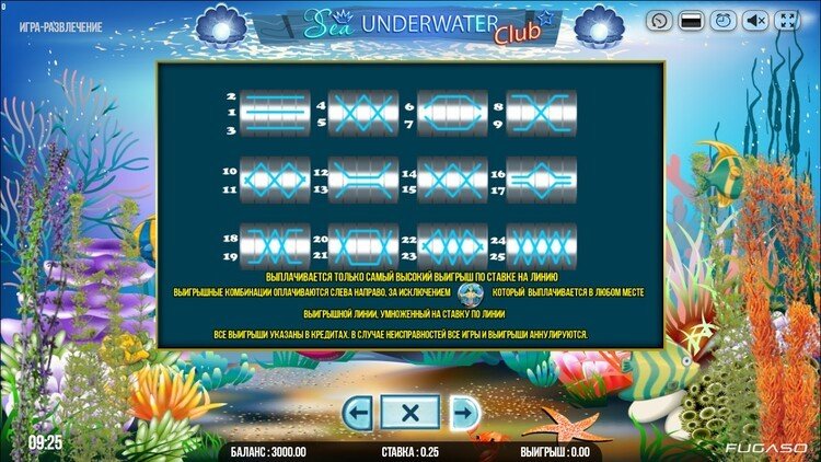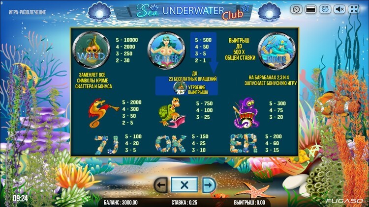 Таблица выплат Sea Underwater Club