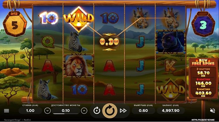 | Символ с надписью Wild (Wild) | 3 | 10 | 50 |