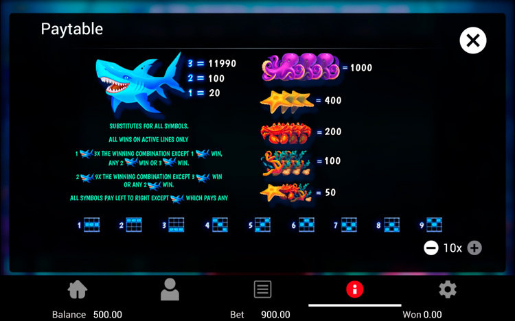 Таблица выплат Shark
