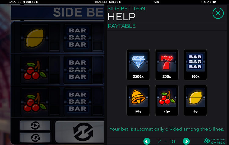 Таблица выплат Side Bet