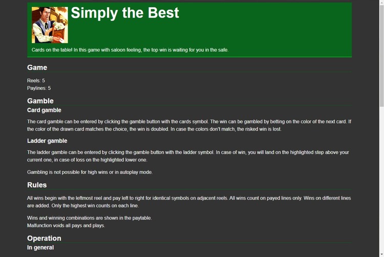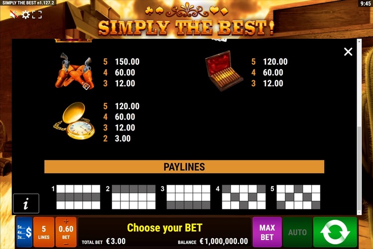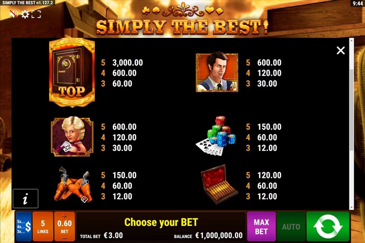 Таблица выплат Simply The Best
