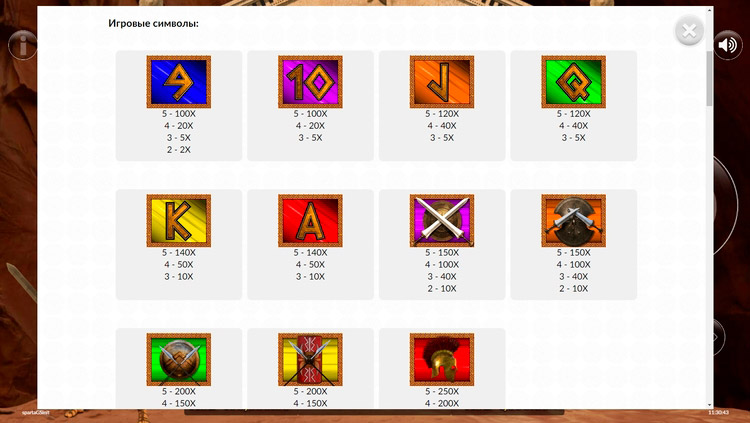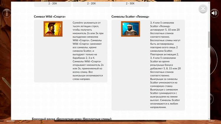 Таблица выплат Sparta