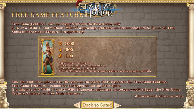 Таблица выплат Sparta’s Honor