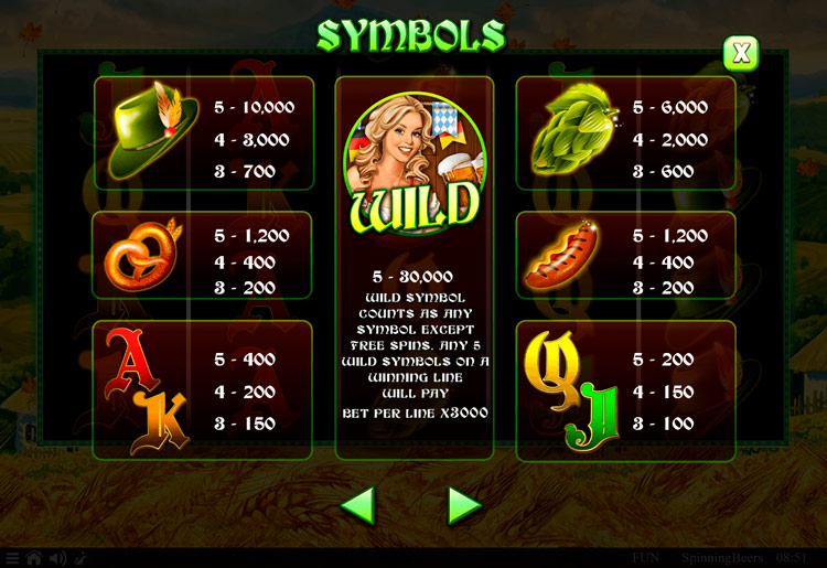 Таблица выплат Spinning Beers