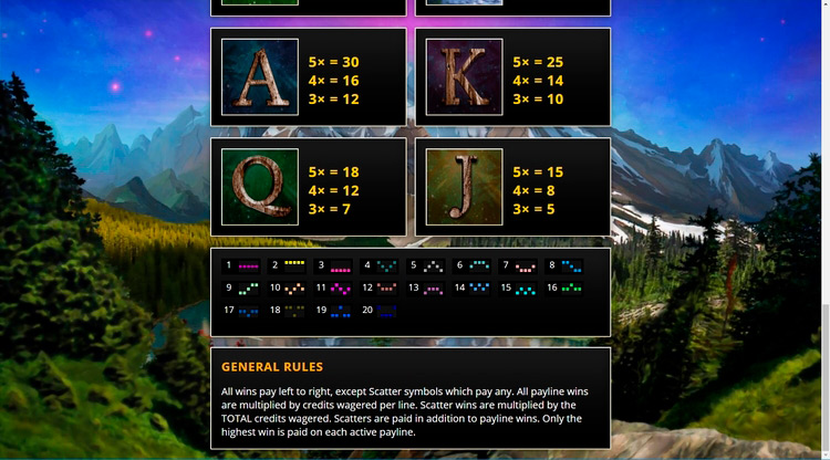 Таблица выплат Spirit of the Wild