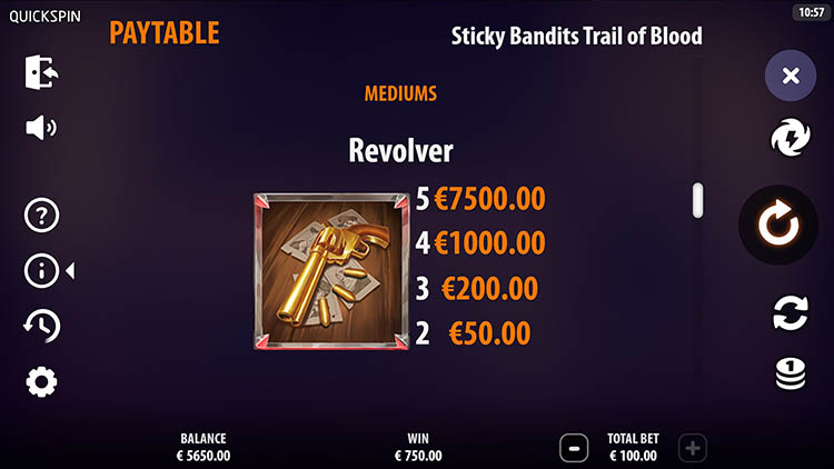 Таблица выплат Sticky Bandits: Trail of Blood