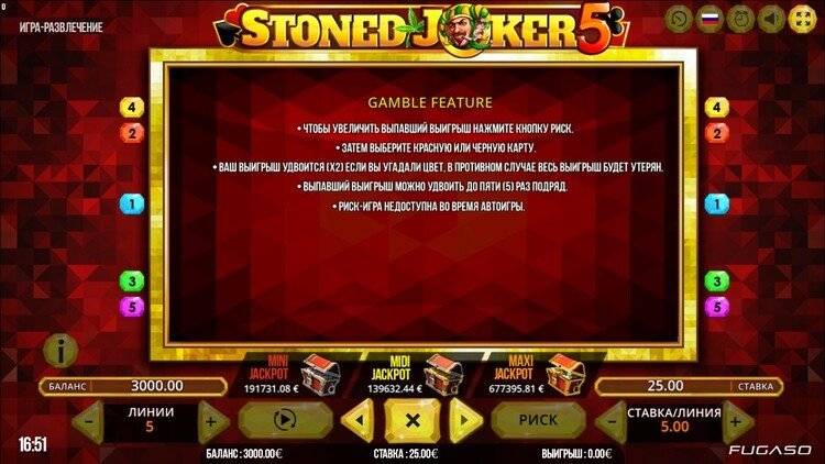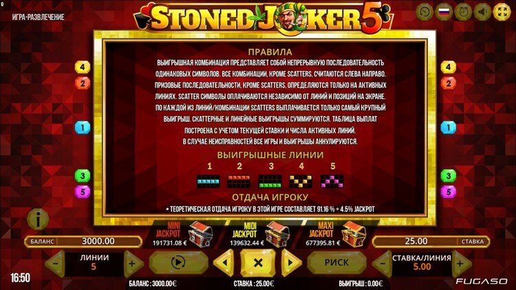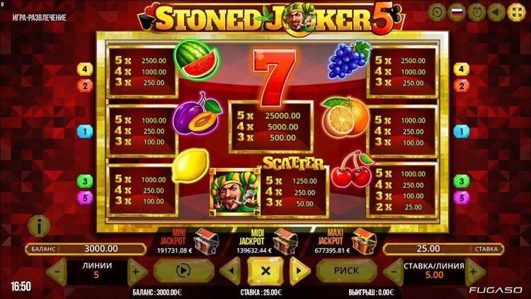 Таблица выплат Stoned Joker 5