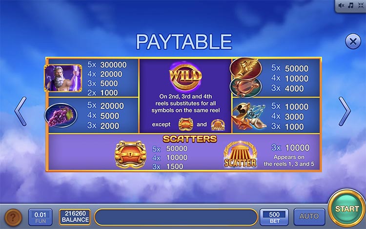 Таблица выплат Storm of Zeus