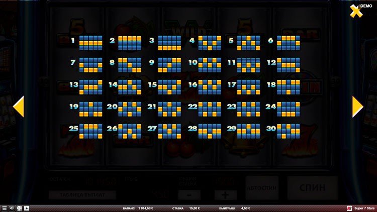 Таблица выплат Super 7 Stars
