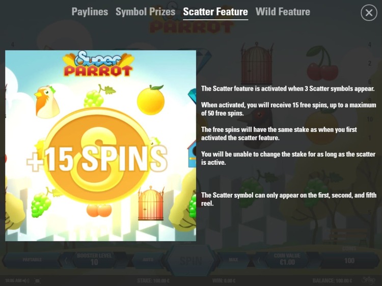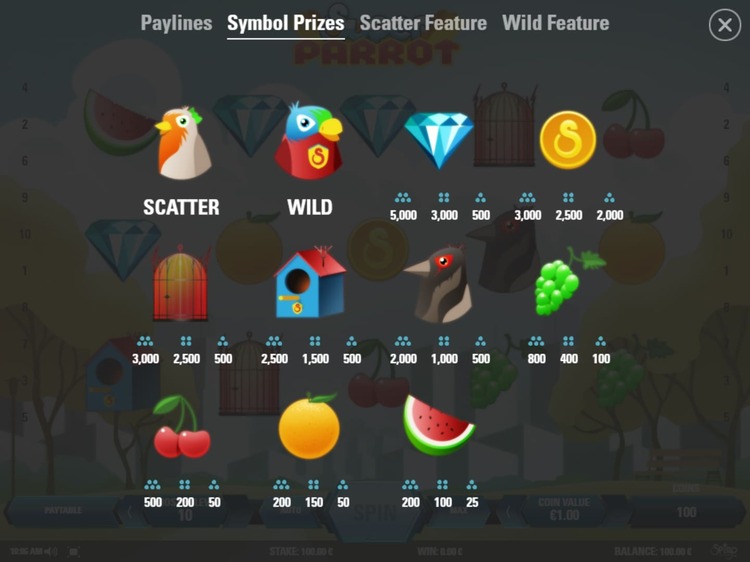Таблица выплат Super Parrot