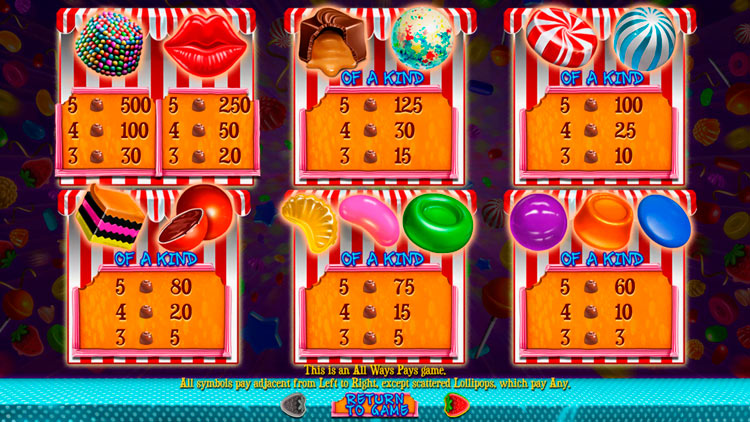 | Фиолетовая, Оранжевая, Синяя конфеты | 3 | 10 | 60 |