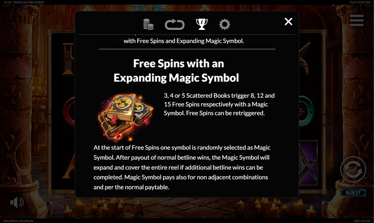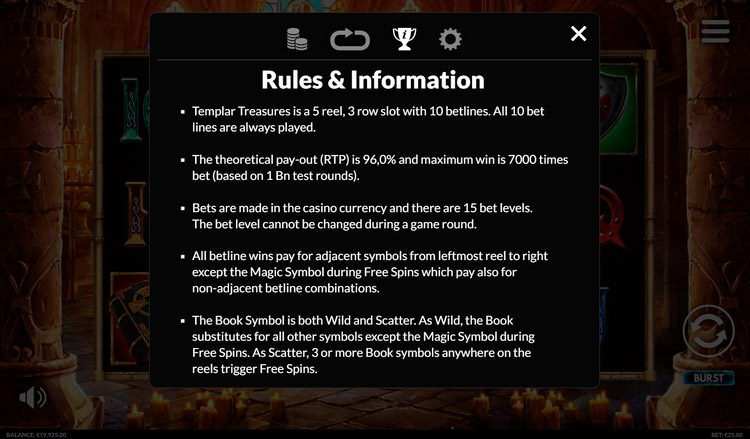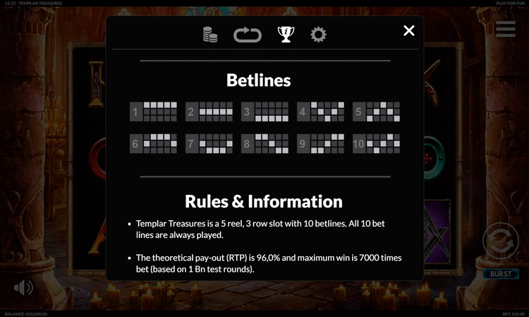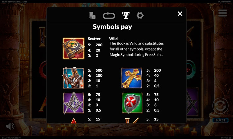 Таблица выплат Templar Treasures