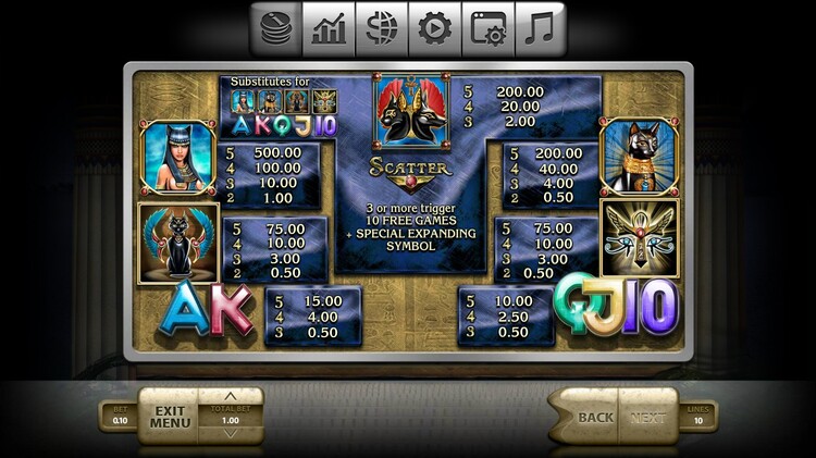 | Кошка и Анубис (Scatter) | - | 2 | 20 | 200 |