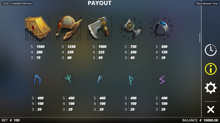 Таблица выплат Thor Hammer Time
