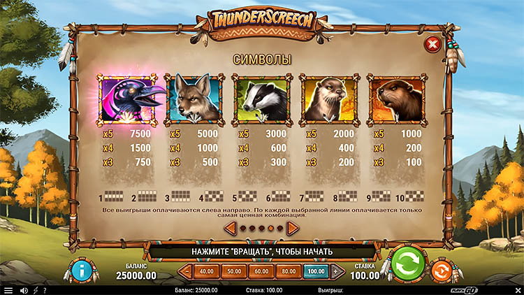 Таблица выплат Thunder Screech