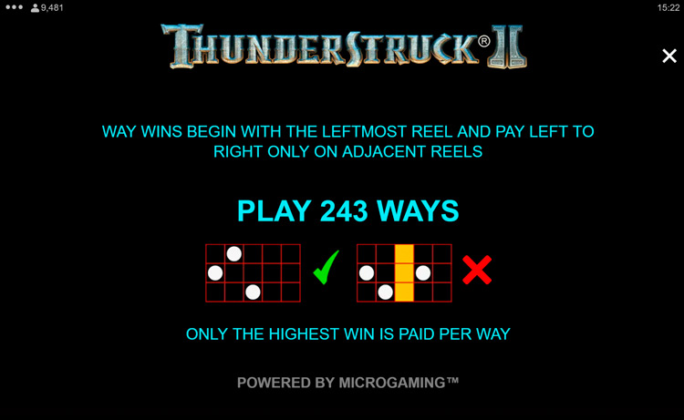 Таблица выплат Thunderstruck 2