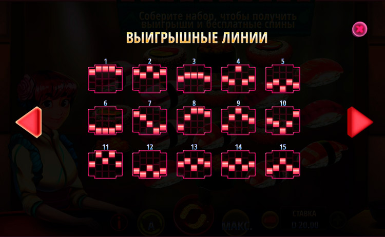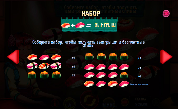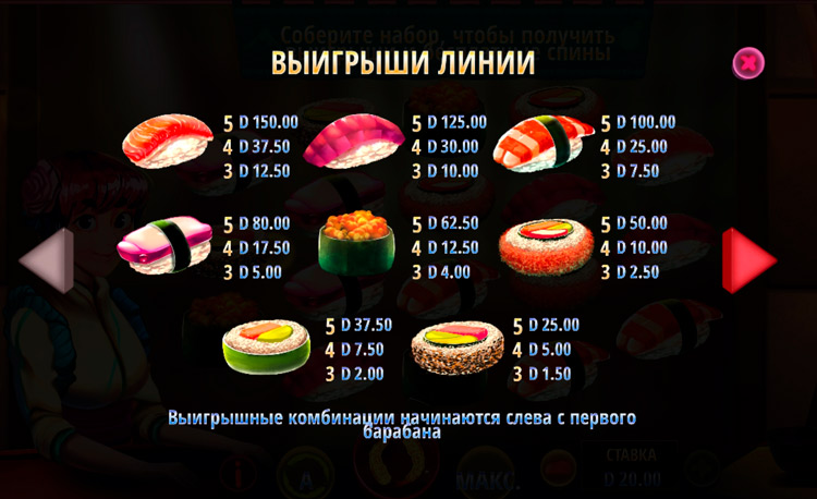 Таблица выплат Tomoe’s Sushi Bar
