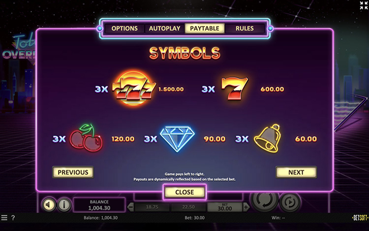Таблица выплат Total Overdrive