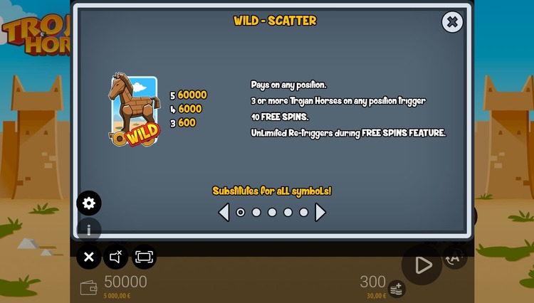 | Троянский конь (Wild/Scatter) | - | 600 | 6 000 | 60 000 |