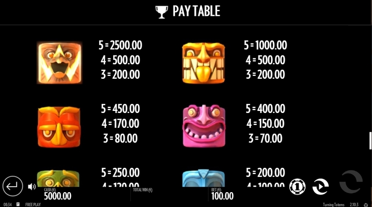 Таблица выплат Turning Totems
