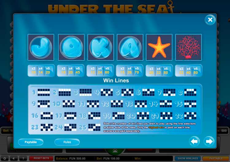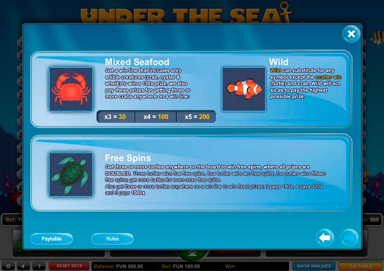 Таблица выплат Under the Sea